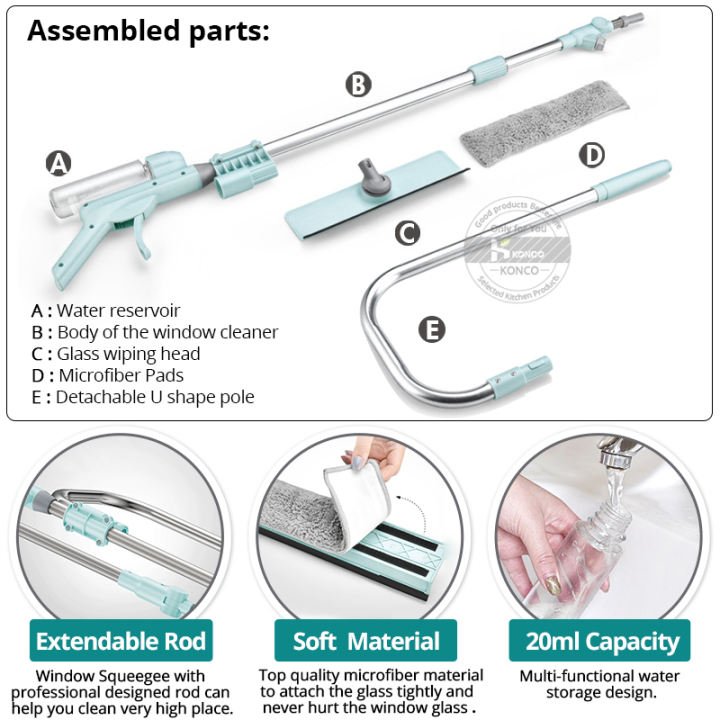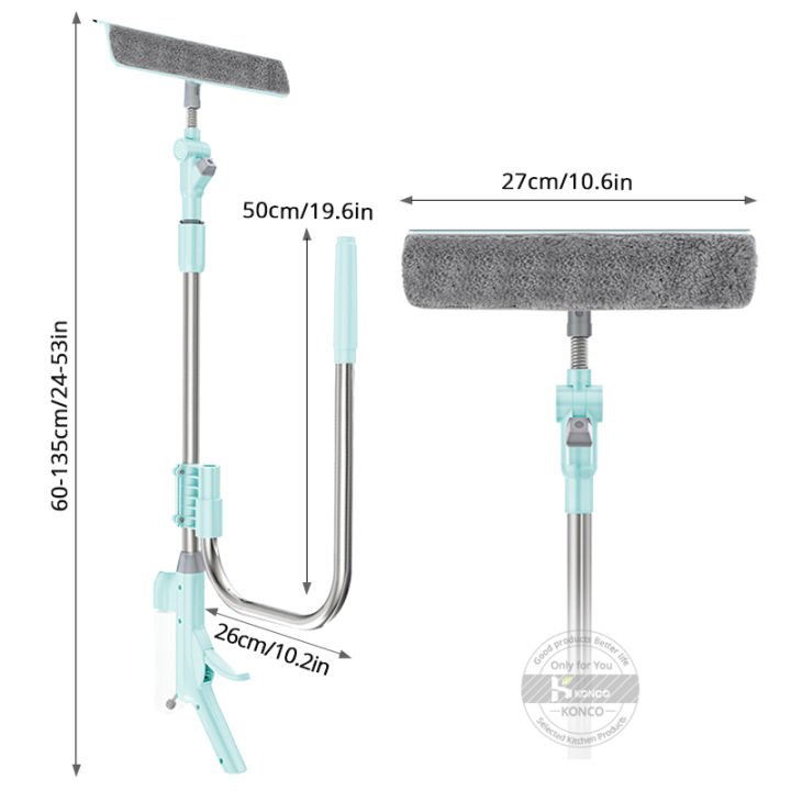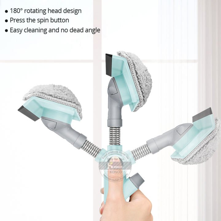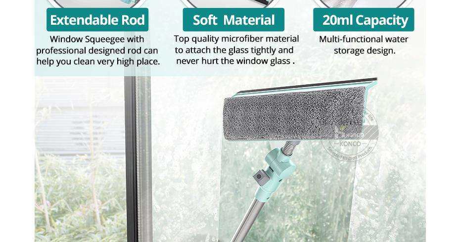 Konco Glass Cleaner Window Squeegee Microfiber Extendable Window Scrubber Telescopic Handle Glass Sponge