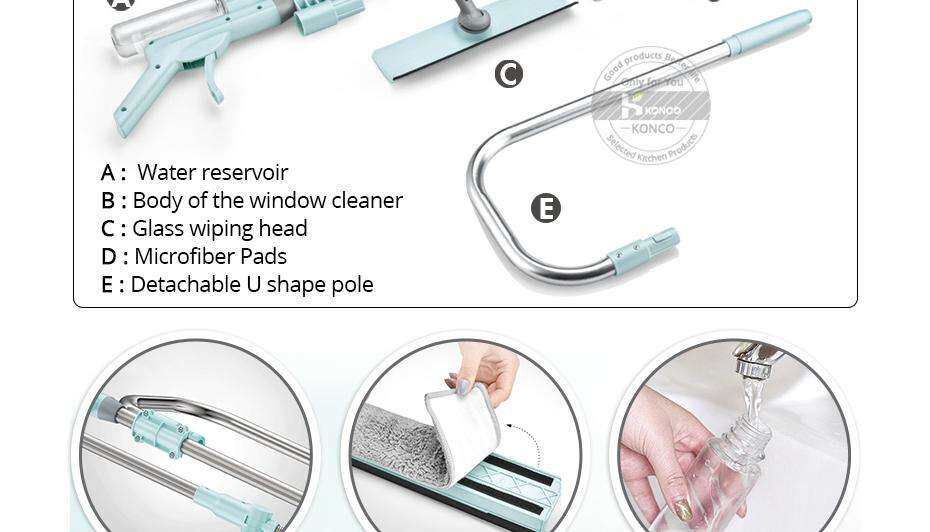 - Creative U-shape design, bring much convenience for clean inside and outside window, safely and quickly;