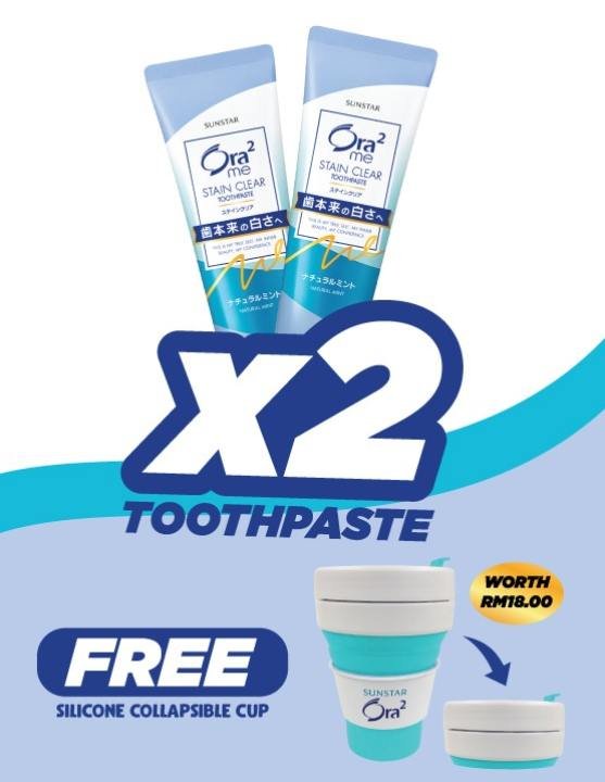 Ora2 me Stain Clear Toothpaste Premium Pack – 2 x Natural Mint 140g + FREE Foldable Collapsible Silicone Cup